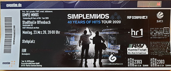 I updated the database with 19 new Simple Minds tickets and also uploaded better quality versions of about 50 previously uploaded tickets. After this update there are 1094 Simple Minds concert tickets on the website.